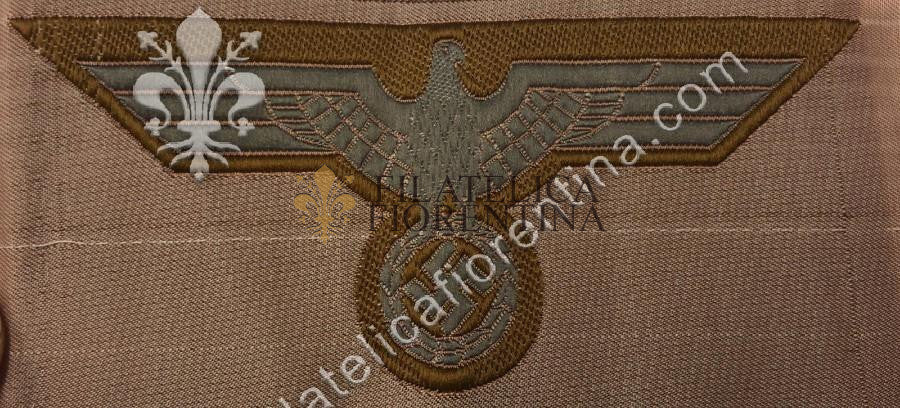 Aquila da petto su seta filo grigio, fondo kaki
