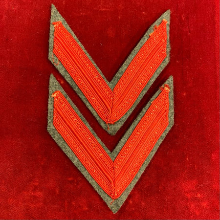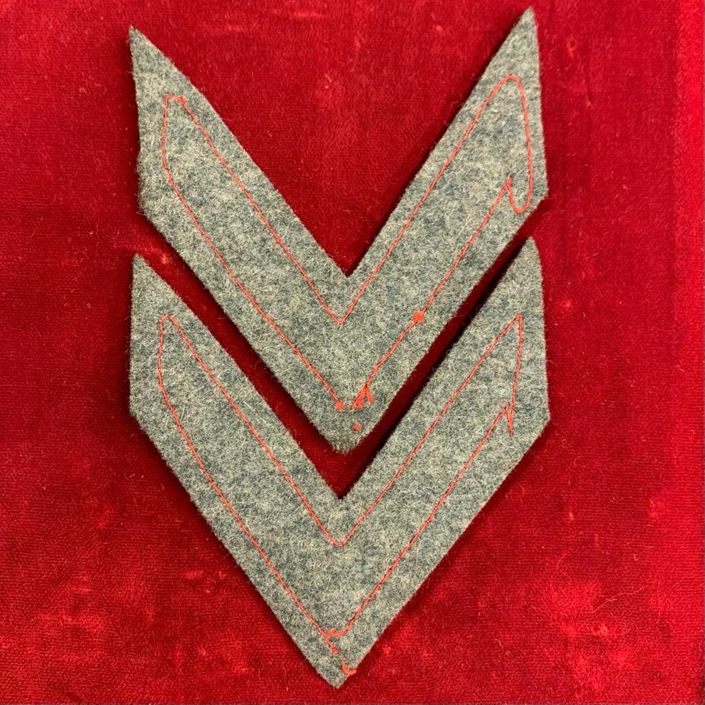 Coppia di gradi da manica da soldato scelto su panno grigio/verde