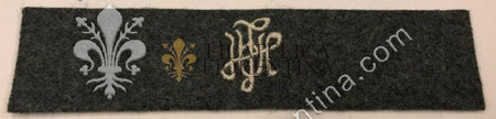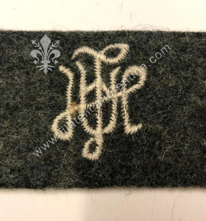 Distintivo con L A H "Leibstandarte SS Adolf Hitler" cifre filo bianco, su fondo verde