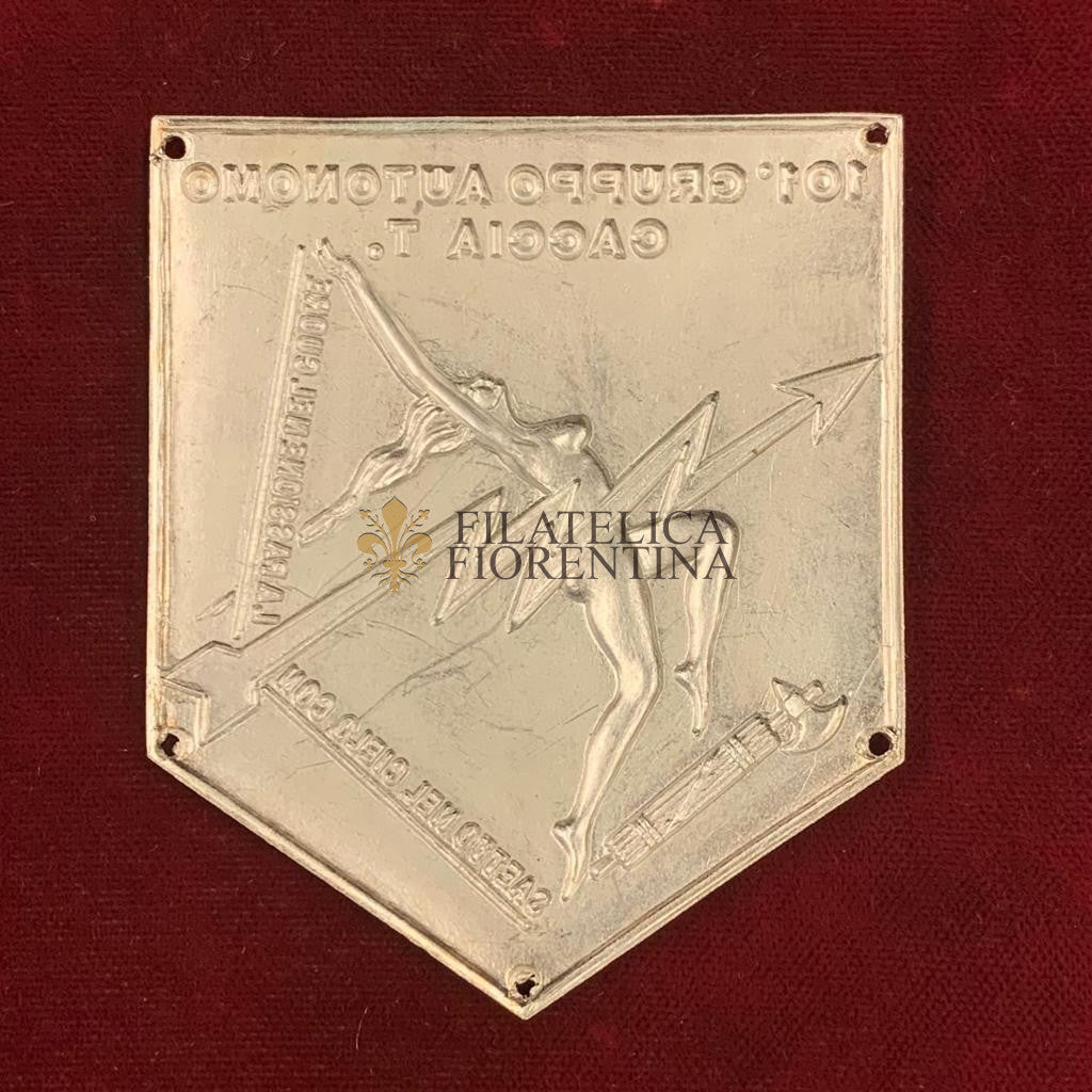 Distintivo del 101° Gruppo Autonomo Caccia Terrestri - in alluminio con fulmine rosso