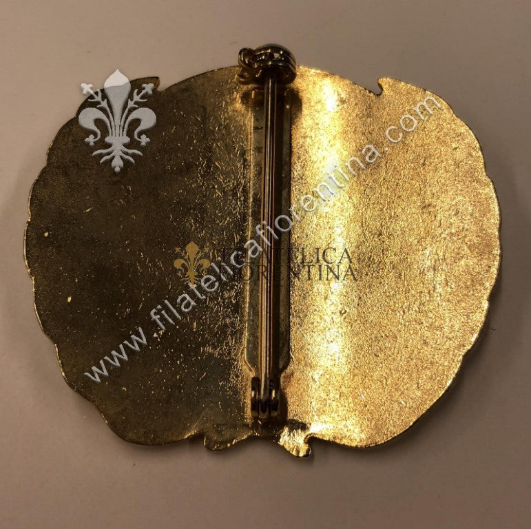 metallo dorato e smalto con attacco a spilla