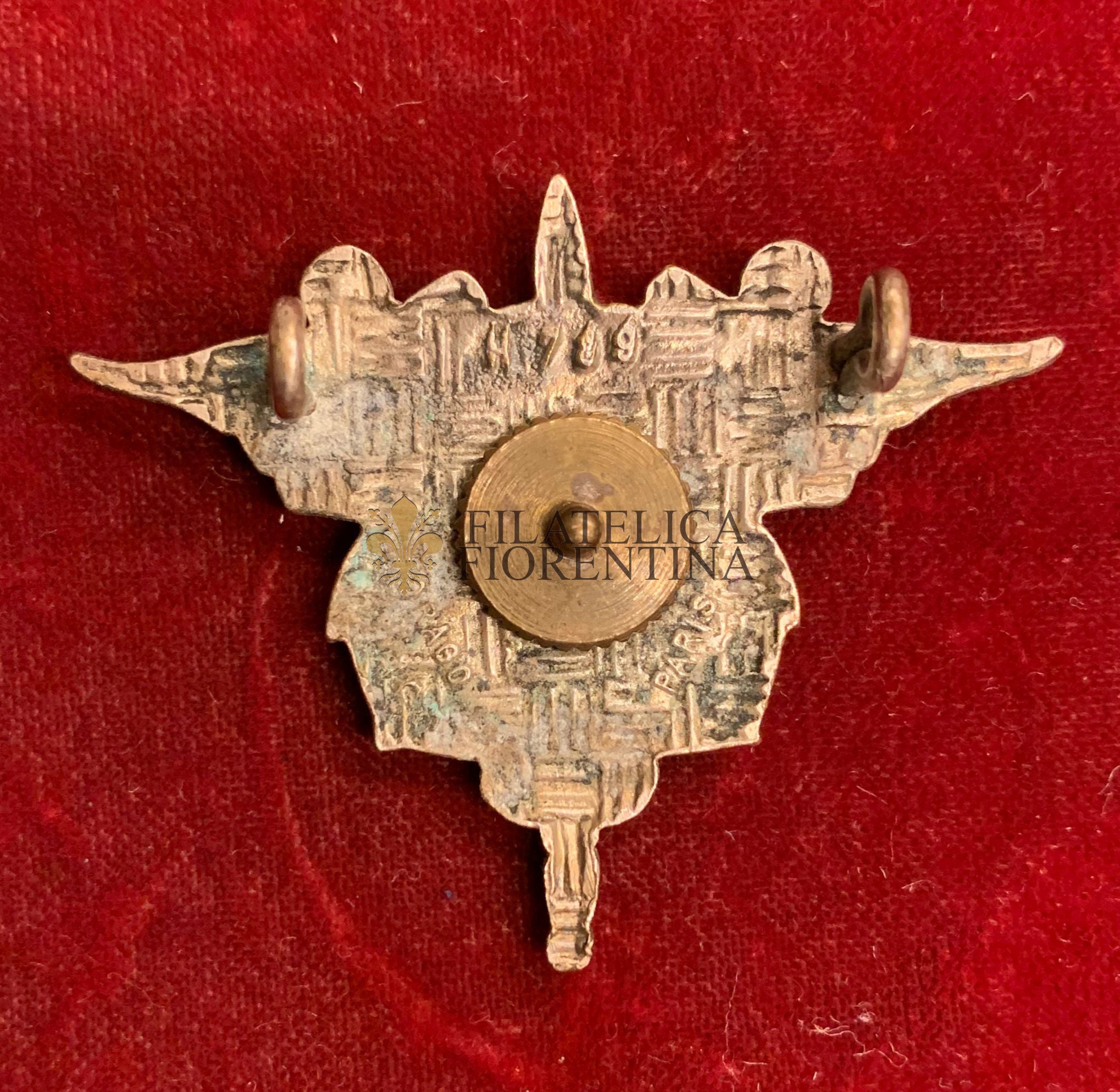 Distintivi in metallo dorato con smalti e dettagli in rilievo
