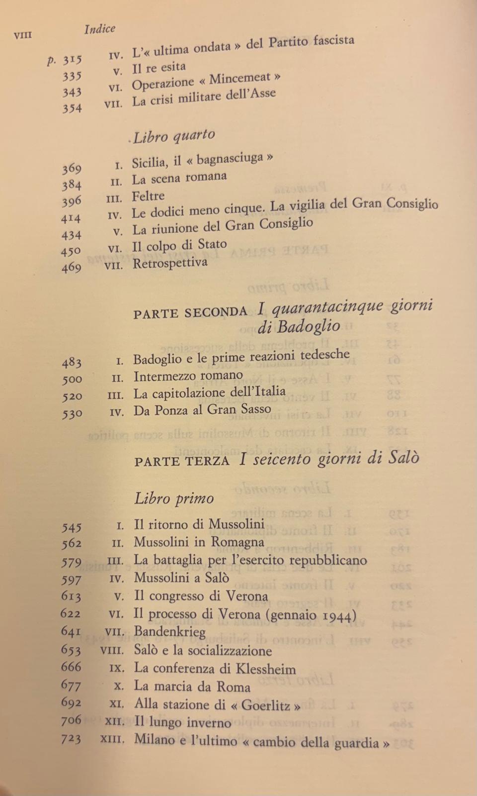 Prendendo le mosse dalla grande svolta del 1942 - Stalingrado e El Alamein - Deakin analizza le ripercussioni dei rovesci militari soprattutto negli ambienti del partito fascista e della corte, e il maturare del colpo di Stato monarchico. La brutale reazione di Hitler all'armistizio dell'8 settembre aprí la strada al tentativo di una restaurazione fascista, e la « Repubblica sociale italiana » fu l'espressio-ne, proterva e grottesca, di un anacronistico « ritorno alle origini » e, ad un tempo, il segno del definitivo tramonto del dittatore, ormai impotente di fronte all'alleato Hitler e sempre piú isolato in mezzo al paese in rivolta contro l'oppressione nazi-sta. La narrazione del Deakin si di stende dalle pagine sanguinose della repubblica di Salò (il processo di Ve-rona, la lotta antipartigiana), al caotico programma sociale, ai contrasti e alle rivalità fra fascisti e tedeschi, fino all'epilogo dell'insurrezione popolare del 25 aprile 1945.
