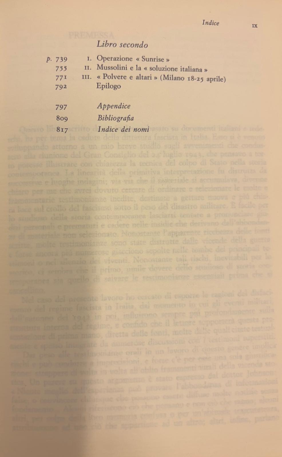 Frutto di sette anni di accurate ricerche in archivi tedeschi e italiani, questo lavoro di F. W. Deakin, fondato su una amplissima documentazione in massima parte inedita, costituisce il primo, serio tentativo di ricostruzione storiografica di uno dei momenti e aspetti piú oscuri del grande dramma della partecipazione italiana alla seconda guerra mondiale. Se infatti l'attenzione degli studiosi si era prevalentemente rivolta in anni recenti al tema esaltante della Resisten-za, alla straordinaria ricchezza e varietà del movimento di riscatto dalla dittatura fascista, rimanevano per altro verso ancora in gran parte nell'ombra le complesse trame, politiche e diplomatiche, che, sullo sfondo e sotto la spinta della disfatta militare, avevano portato alla crisi del 25 luglio 1943 prıma, e poi, attraverso i « seicento giorni » della repubblica di Sa-lò, alla tragica dissoluzione del regime di Mussolini. Tale storia segreta l'autore ha illuminato con pacata obiettività di ricercatore, allontanando il piú possibile da sé ogni tentazione di giudizio personale. Come egli stesso scrive, « è facile, per lo studioso di storia contemporanea lasciarsi tentare a pronunciare giudizi personali e prematuri e cadere nelle insidie dell'abbondanza del materiale. Nonostante tali rischi, inevitabili per lo storico, ci sembra che il primo, umile dovere sia quello di salvare le testimonianze essenziali prima che si cancellino».
