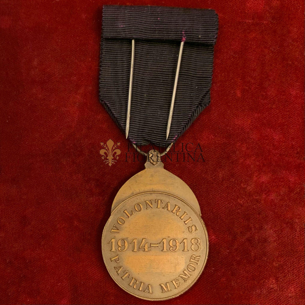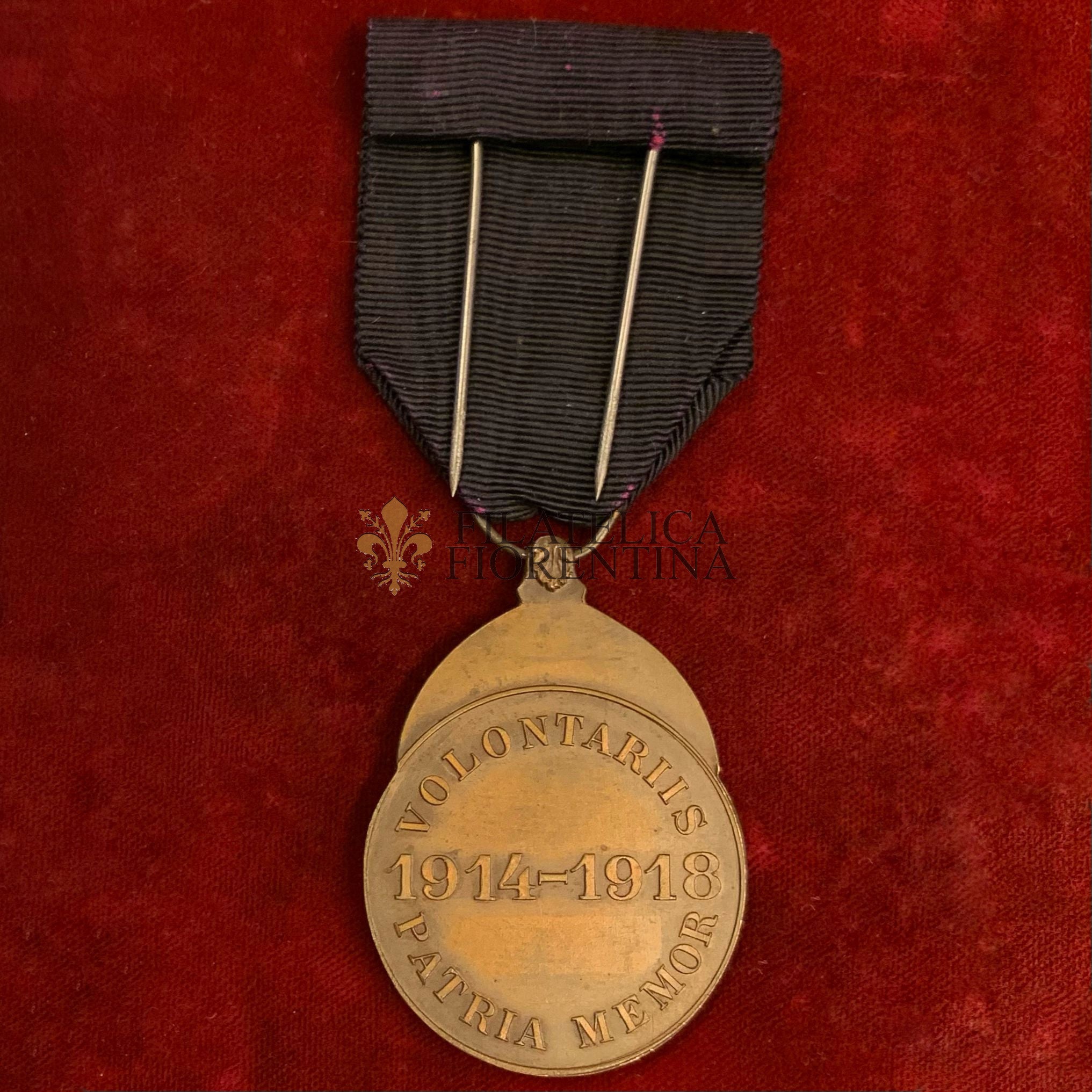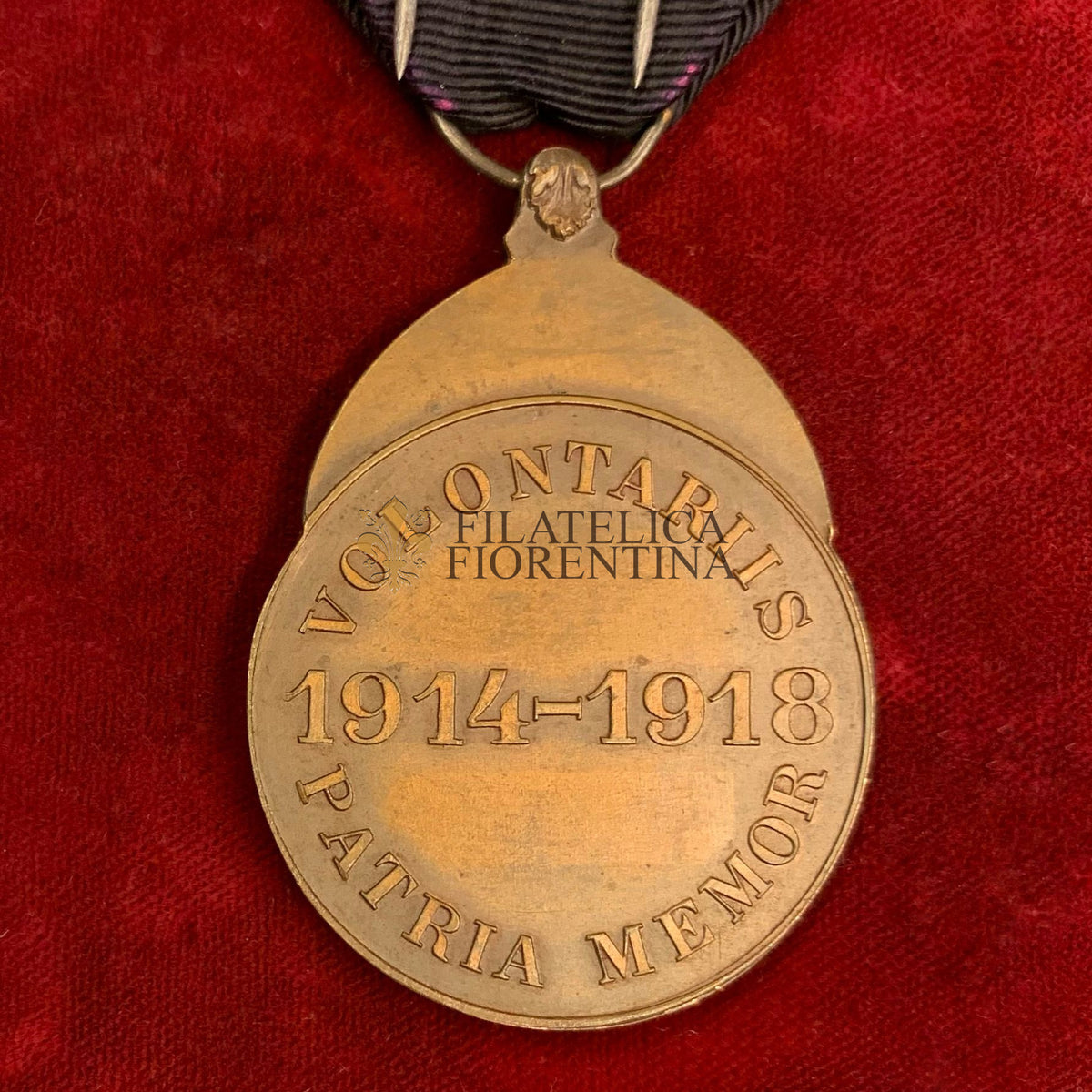 Verso: legenda circolare "VOLONTARIIS _ PATRIA MEMOR" Nel campo le date "1914-1918"