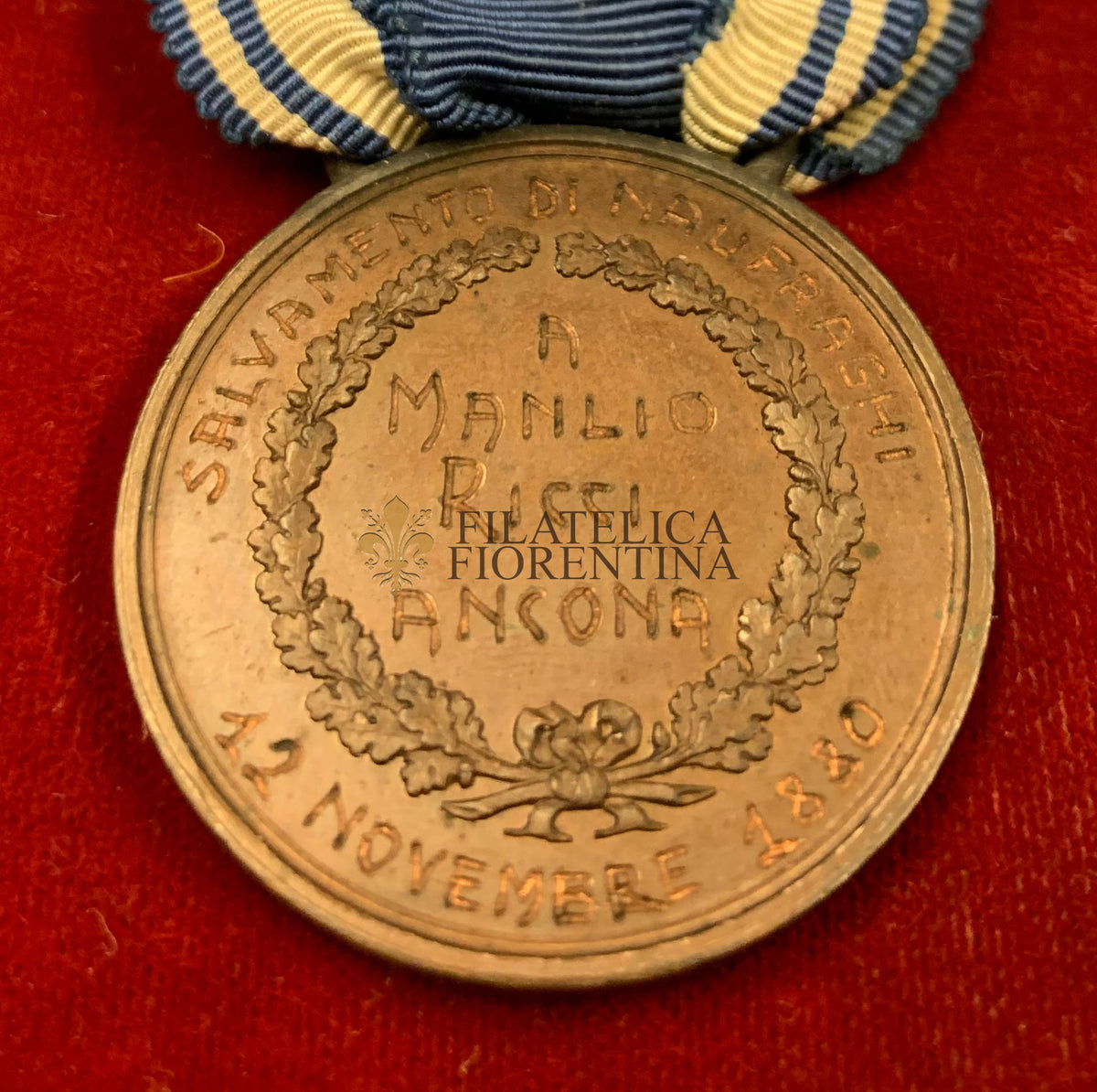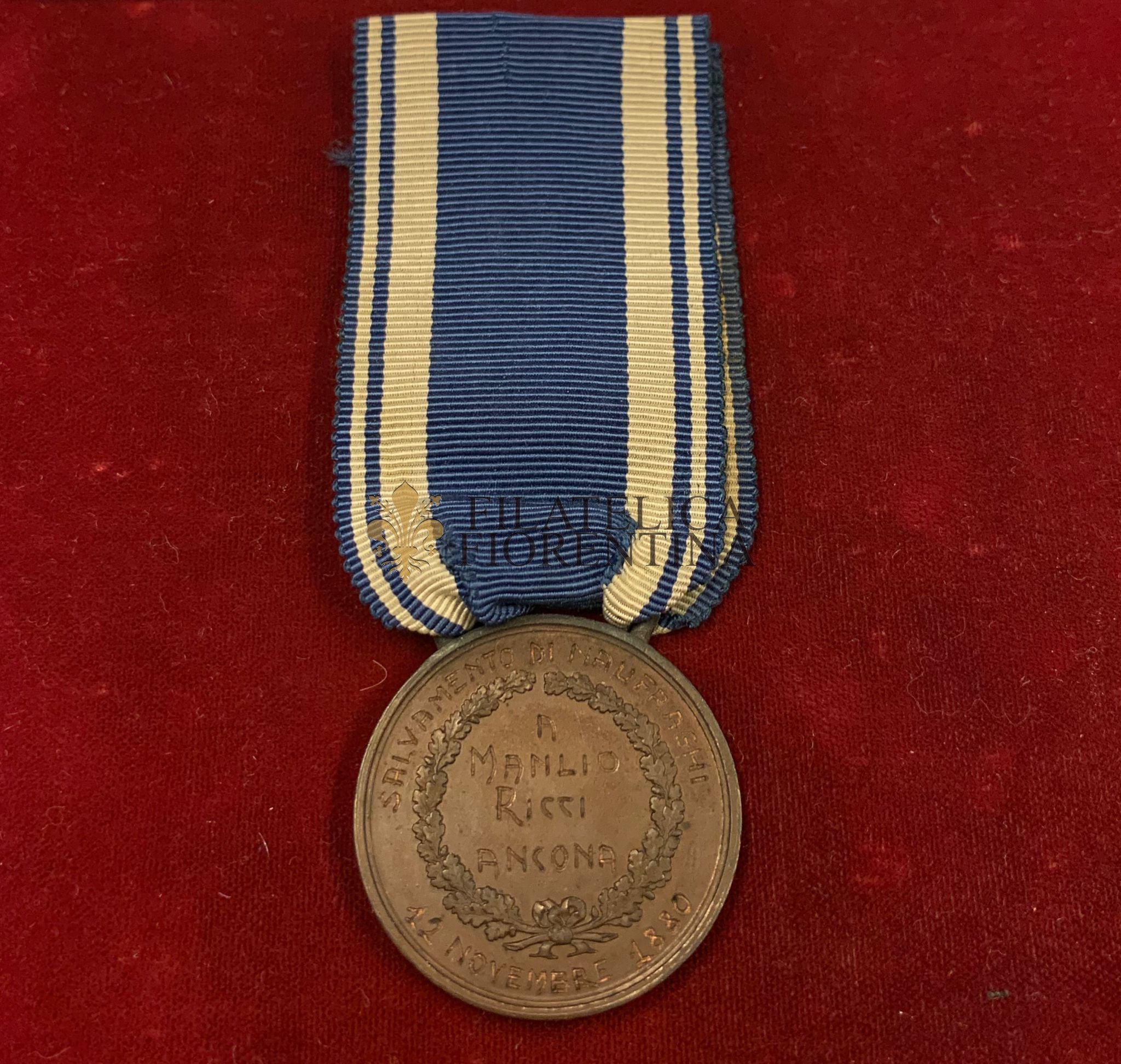 Concessa per un salvamento di naufraghi il 12 Novembre 1880 a Manlio Ricci ad Ancona