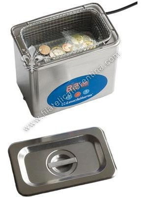 Professionale, realizzato in acciaio inox per la pulizia ad ultrasuoni di monete, medaglie, vetri, gioielli, apparecchi ortodentici, protesi dentarie, lenti di plastica e altri piccoli oggetti domestici e di laboratorio.