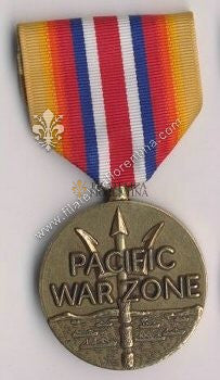 World War II Campaign - Pacific War Zone Medal Pacific War Zone Medal - for merchant marine service in the Pacific War Zone, which included the North Pacific, South Pacific, and the Indian Ocean east of 80 degrees east longitude, during the period December 7, 1941, to March 2, 1946. Design: The triden